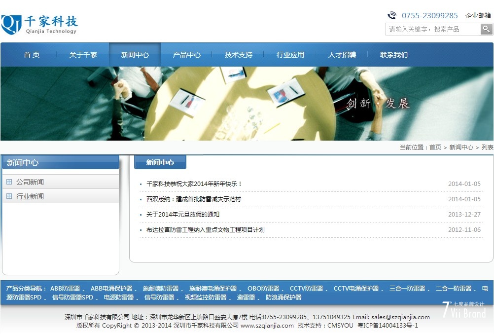 BlueTech蓝色科技Phpcms企业网站模板是七度品牌设计CMSYOU团队在2014年1月为深圳市千家科技有限公司定制的一套Phpcms v9中英文网站模板。BlueTech Phpcms模板包括首页、产品频道页、产品列表、产品内页、新闻列表、新闻内页、联系我们、百度地图单页等页面模版,整体色调采用蓝色、灰色搭配,简洁清新,适合科技公司用于产品展示!该PHPCMS模板采用Phpcms独有的强大灵活的后台管理功能,可以充分满足您对产品、新闻的自定义设置,从而使得网站更具个性化和唯一性,整站代码特别优化非常有利于网站的搜索引擎优化收录,保证网站的优化推广更加简单快捷。