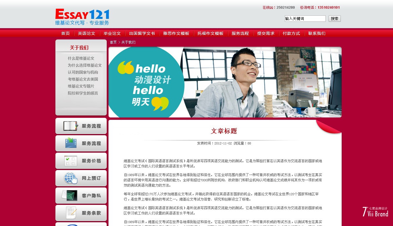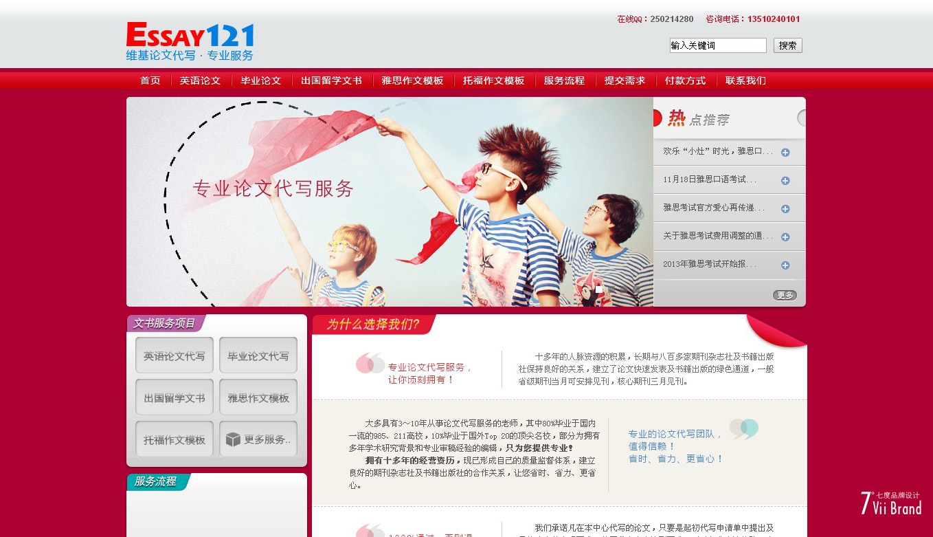 iEssay服务类型红色Phpcms企业网站模板是七度品牌设计在2012年12月初为维基论文服务公司定制的一套Phpcms v9网站模板,包括首页首页、业务介绍、文章列表、在线咨询、需求提交,多种方式介绍公司业务,及时发布公司业务动态,适合以文章为主的服务类型的公司网站。iEssay服务类型红色Phpcms企业网站模板基于Phpcms V9独有的强大灵活的后台管理功能,可以充分满足您对网站各个模块的自定义设置,从而使得网站更具个性化和唯一性,整站代码特别优化非常有利于网站的搜索引擎优化收录,保证网站的优化推广更加简单快捷。