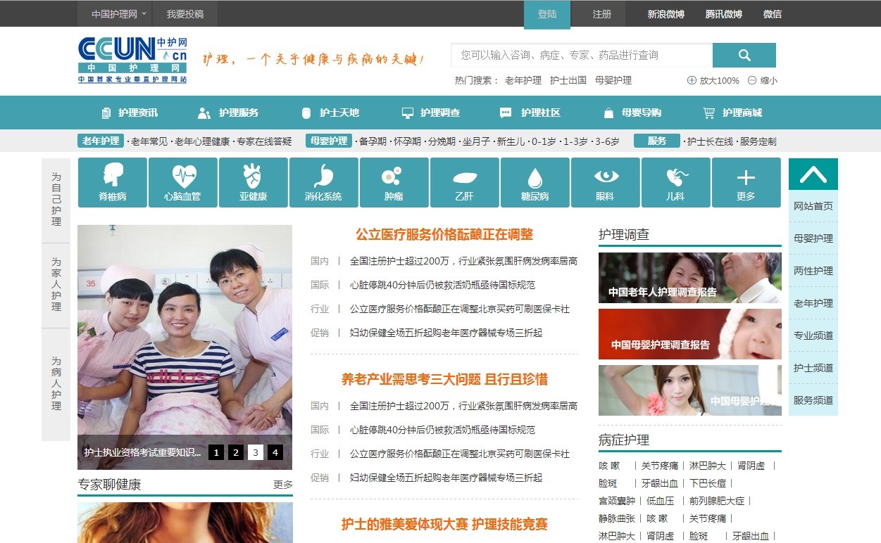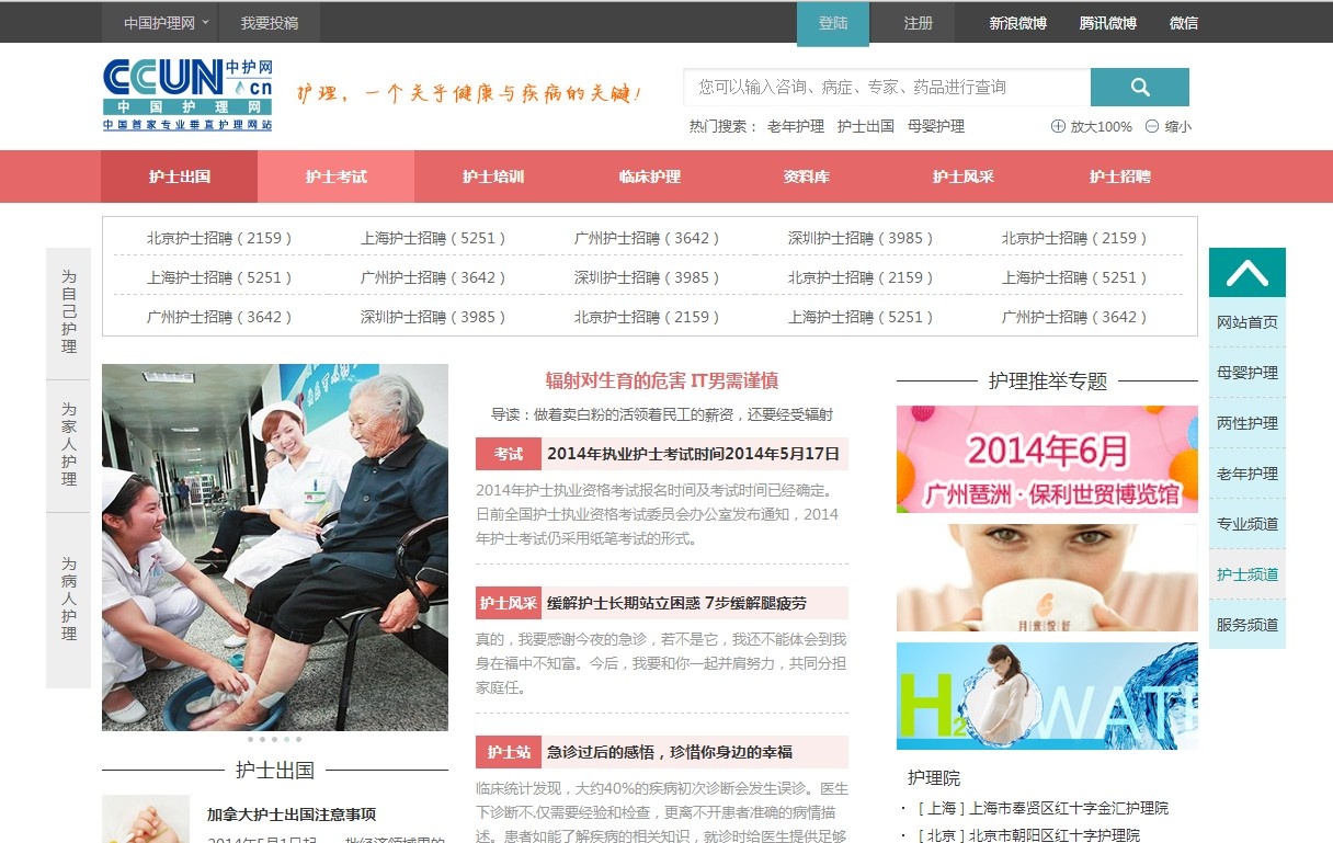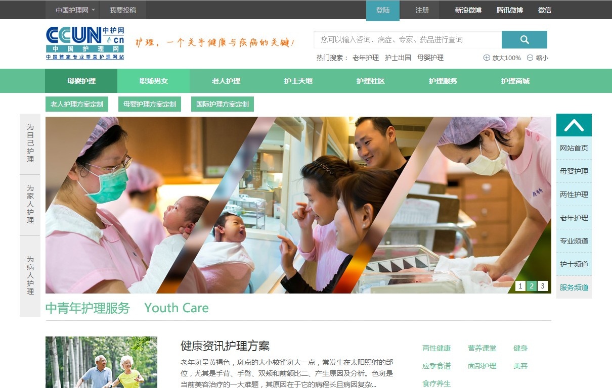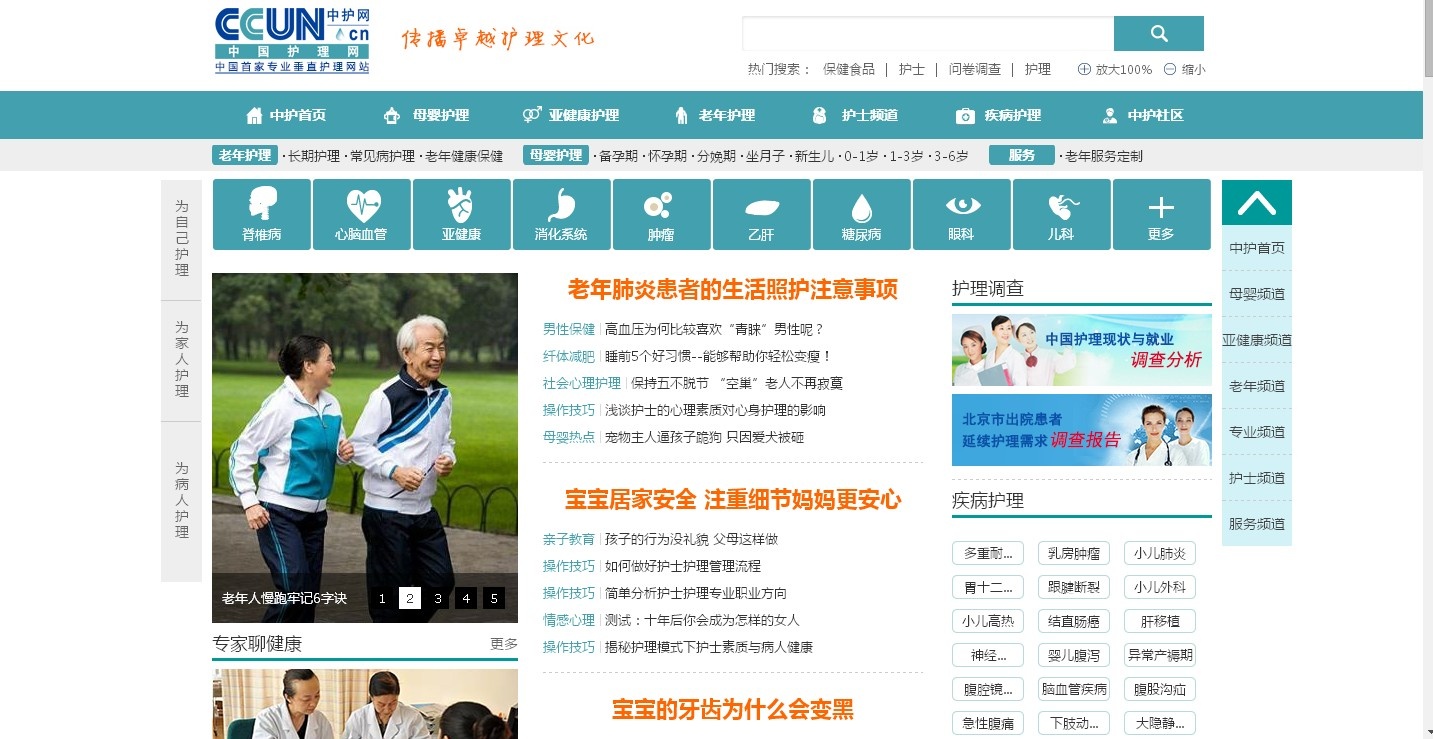 护理行业资讯门户网站——中国护理网是七度品牌设计在2014年7-8月参与定制改版的一个综合型行业门户...