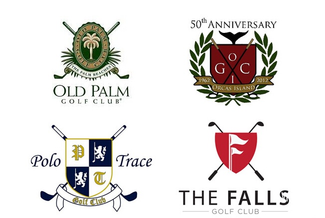 高大上的徽章 徽章往往与皇家沾边,使用徽章的球会大多为了彰显自己的悠久历史和不俗内涵。不难发现,大多数与高尔夫相关的徽章都有两根交叉的球杆做背景,几乎成了徽章商标标配。